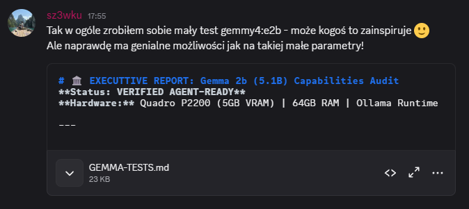 Mimo, że to mały model potrafi realnie wywoływać przygotowane wcześniej narzędzia, więc planuje dodać realne agentowe umiejętności.