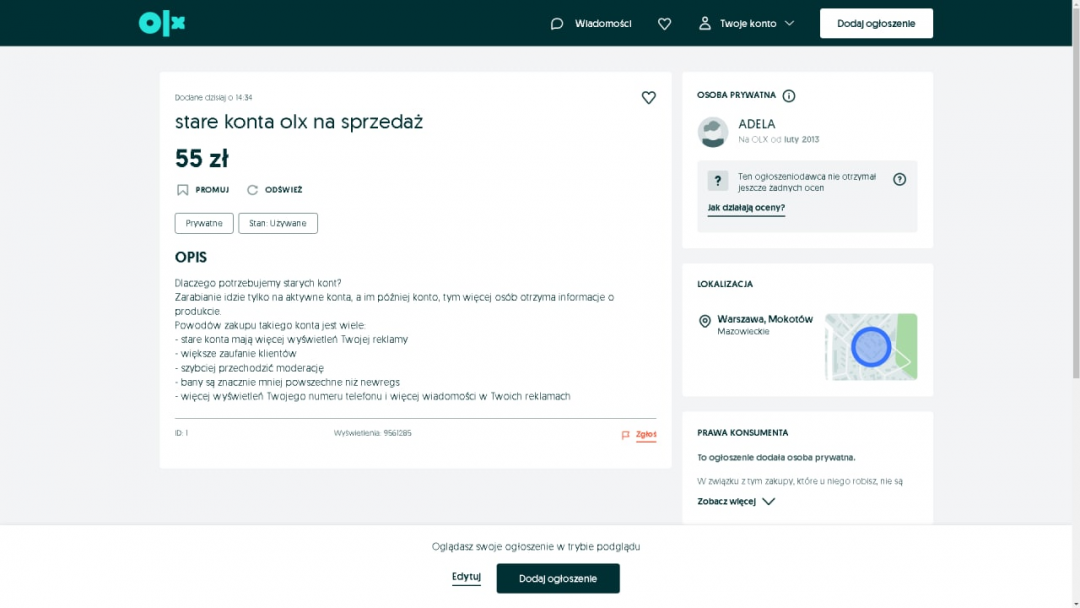 [SPRZEDAM] Konta olx.pl z datą rejestracji 2007-2021