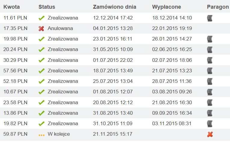 Witam. Przeglądając internet w poszukiwaniu sposobu na zarobek znalazłem bardzo dużo ofert z tym że w większości zarabianie na nich polegało na zainwestowaniu własnej gotówki lub rozsyłanie ludziom jakiś linków albo szukanie poleconych... W końcu znalazłem serwis na którym da się zarobić bez tego wszystkiego po prostu samemu bez niczyjej ingerencji ( oczywiście można zarobić więcej mając poleconych ale to nie jest konieczne ) Wink Nazywa się on MyPay. Rejestracja na nim jak i samo zarabanie jest w 100% darmowe. Faktem jest, że kokosów tam zarobić nie można porównując z innymi ofertami ale przynajmniej jest to realne. Zarabianie polega na wypełnianiu różnych akcji od różnych reklamodawców np. trzeba gdzieś założyć konto lub wypełnić jakąś ankietę. Nie jest to nic trudnego wystarczy uważnie czytać. Jak wspomniałem wcześniej zarobki nie są zbyt duże, ja przez tydzień takiego zarabiania (ok. ~2h dziennie) dorobiłem się 60zł Smile zawsze coś. Pieniądze można wypłacić przez paypal lub na konto bankowe. Wypłacać można po uzbieraniu minimalnej kwoty 7,50 zł. Maksymalny czas czekania na pieniądze to 14dni ale zawsze jest o wiele szybciej. Także zachęcam do oblukania serwisu Smile Dla wiarygodności dam screena moich wypłat: rejestracja: http://www.myearn.com/?ref=230491&subid= czysta rejestracja: http://www.mypay.pl wskazówki dot. zarobku: 1. Po wykonaniu wszystkich akcji musisz zmienić ip ( jeśli zmienisz ip dostaniesz nowe) i wyczyścić ciasteczka. 2. Podawane dane nie muszą być prawdziwe ale staraj się aby były jak najlbiżej prawdy 3. Do wykonowania akcji potrzebujesz e-maila: polecam ci zakładanie ich na tlen.pl ponieważ zakładasz 1 konto a tak naprawde masz ich 4 (@o2, @go2, @tlen, @prokonto ). Gdy wykonasz wszystkie akcje i zmienisz ip i ciasteczka to na nastepny raz potrzebujesz juz innego maila 4. W razie problemów pisz w tym temacie, na priv lub na gg 7771387