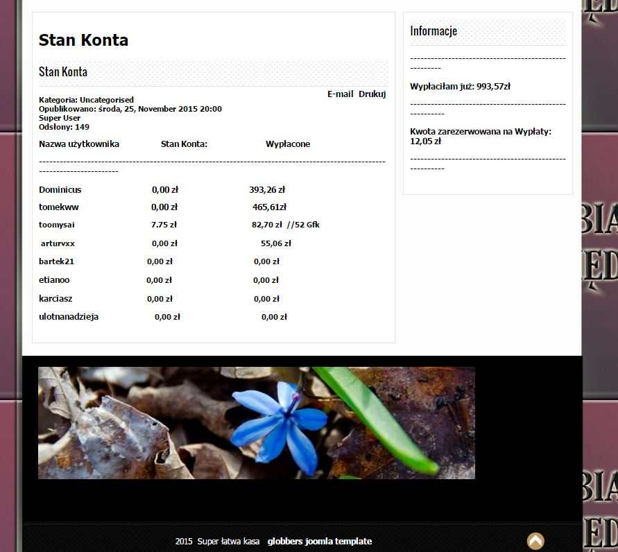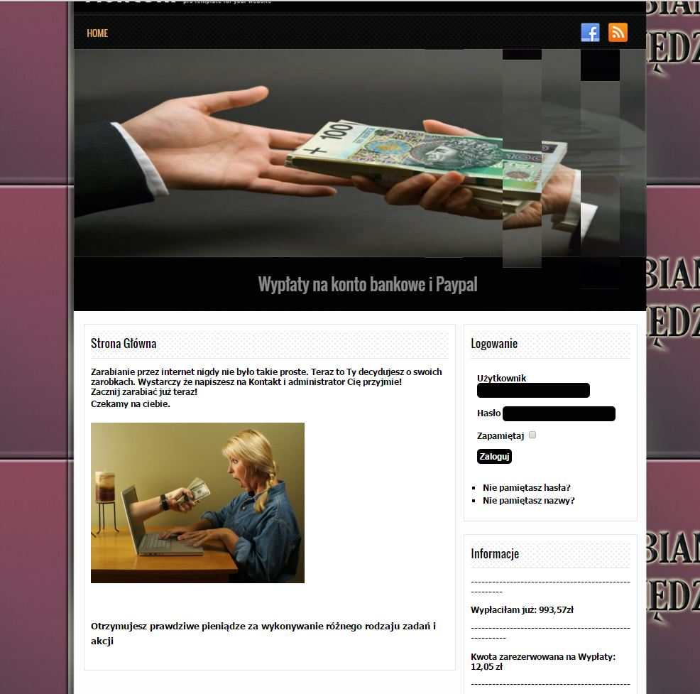 nie nie, to jest dowód mojego kolegi który również tam zarabia. ja nie mam dowodu, ponieważ zleciłem wypłate na konto bankowe mojej koleżanki w niedalekiej przyszłości gdy założe swoje własne konto bankowe podeśle swój dowód niewiem czemu ciągle piszesz że to jakieś oszustwo .. skąd możesz o tym wiedzieć skoro nie próbowałeś? racja strona jest zrobiona bardzo niedokładnie, po amatorsku ale to dlatego, że administratorka nie potrafi tworzyć stron internetowych a tę stworzyła w joomli proszę cię na przyszłość żebyś pierw spróbował a później oceniał, skąd możesz wiedzieć że to oszustwo skoro nawet nie masz tam konta? i jak widać na wyżej przedstawionym przez ciebie screenie ten sam login jest w dowodzie wypłaty i na portalu więc nie wiem co to za różnica czy dodłem swój dowód czy kumpla..
