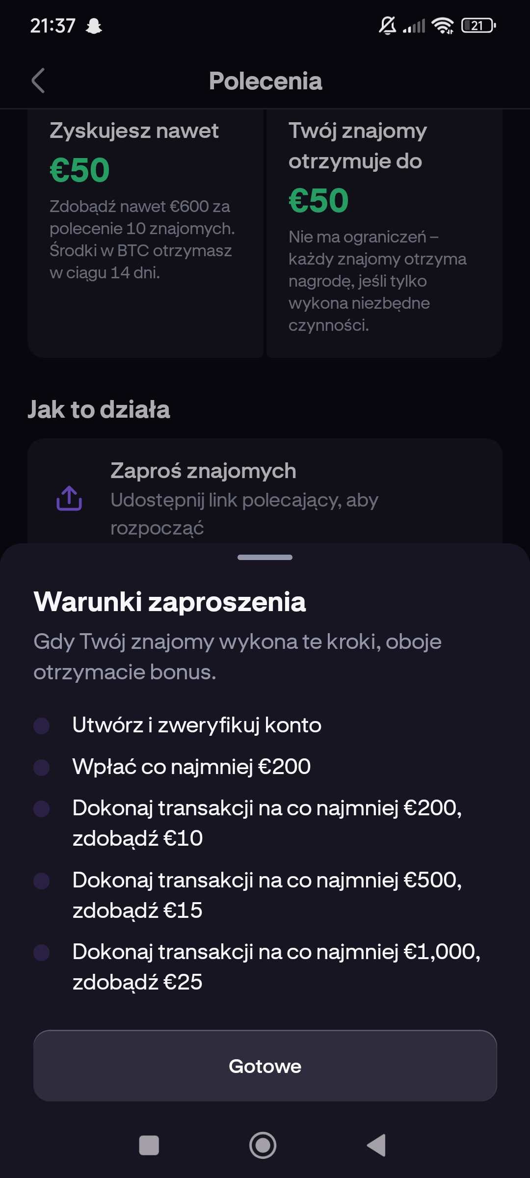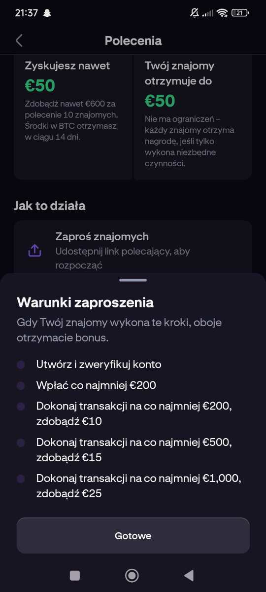 - Wpłata minimum 200Euro (Tylko waluty Fiat , krypto się nie liczy)