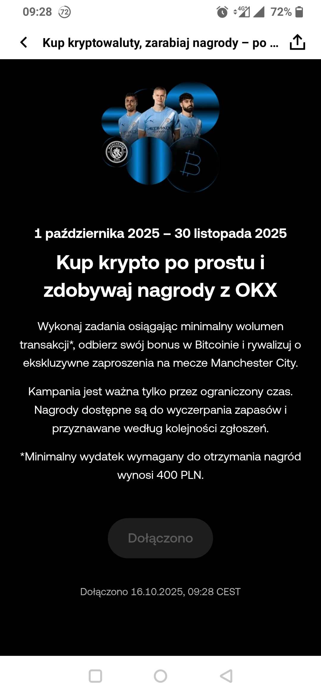 OKX - Bonus po 20€ | Depozyt 200€ + Trade