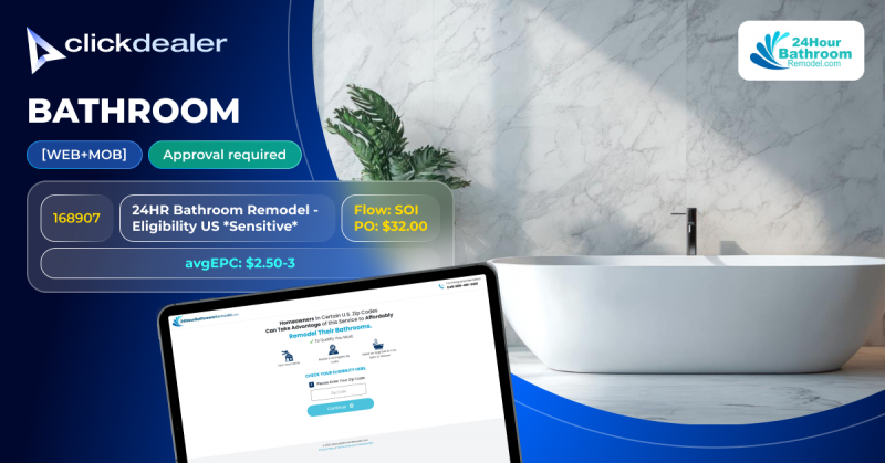 Rosnące ceny nieruchomości i starzejący się zasób mieszkaniowy wciąż napędzają stały popyt na usługi remontowe w USA, a remonty łazienek należą do najpopularniejszych modernizacji. 24HR Bathroom Remodel wpisuje się w ten trend, łącząc właścicieli domów w USA z profesjonalistami, którzy zapewniają szybkie i wysokiej jakości rezultaty. 168907 [WEB+MOB] 24HR Bathroom Remodel – Kwalifikacja /US Wrażliwe Dzięki stawce $32 i średnim EPC na poziomie $2.50–$3.00, ta oferta SOI jest łatwa do przetestowania i wyjątkowo opłacalna. Wyślij kilka kliknięć i przekonaj się sam. Skontaktuj się ze swoim AM lub zarejestruj się TUTAJ- 81 odpowiedzi