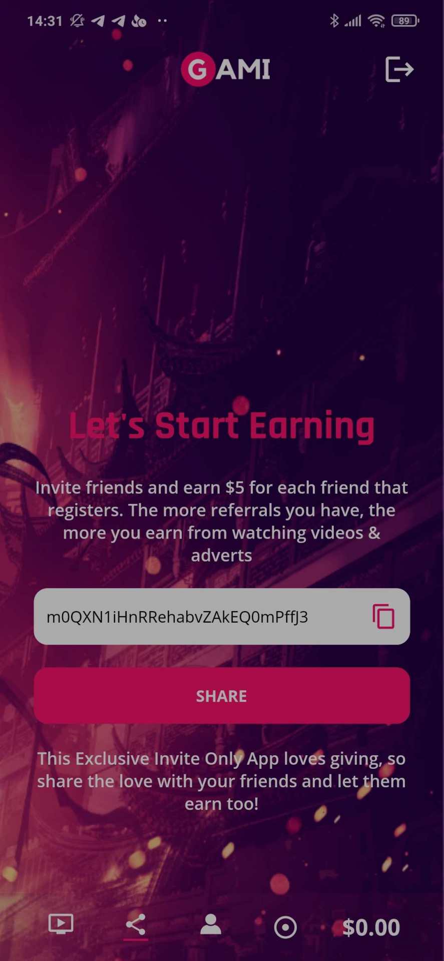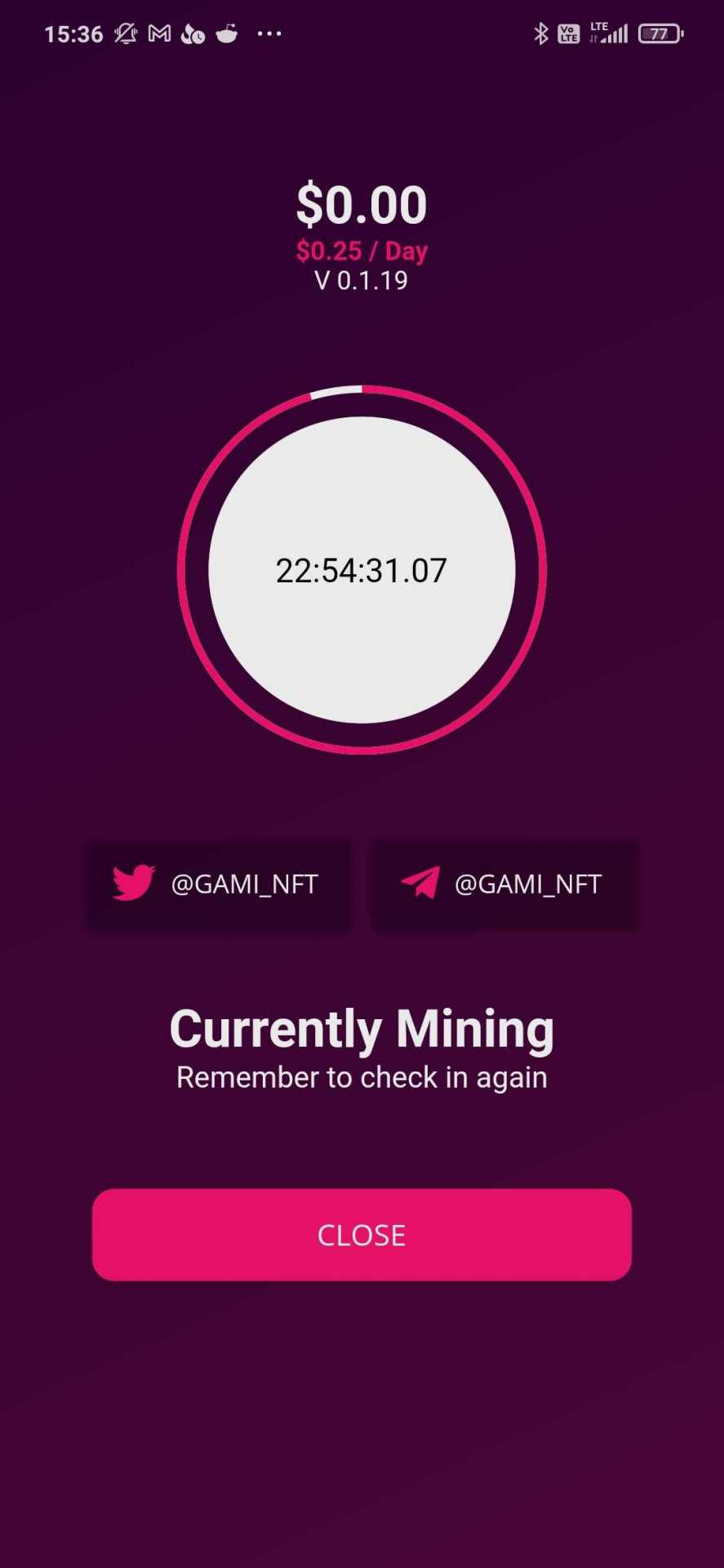 Koparka GAMI 0.25$ dziennie + 5$ za polecenie