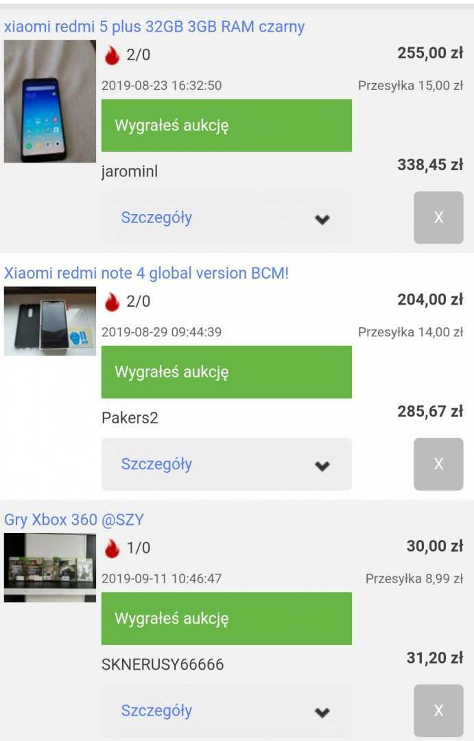 1. Nazwa przedmiotu: Program do licytacji na Allegro eBay Amazon 2. Opis przedmiotu:Do programu dodajemy aukcje ustalamy do jakiej kwoty maksymalnie ma licytować a program przed końcem aukcji 3sec zacznie podbijać.Nie potrzeba byc przy pc, czy tel!! 3. Źródło pozyskania: Własne 4. Zdjęcia: 5. Kontakt:Priv! 6. Cena:20zł 7. Sposób zapłaty:Blik,psc,pay pal