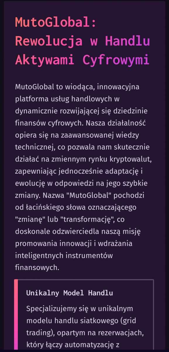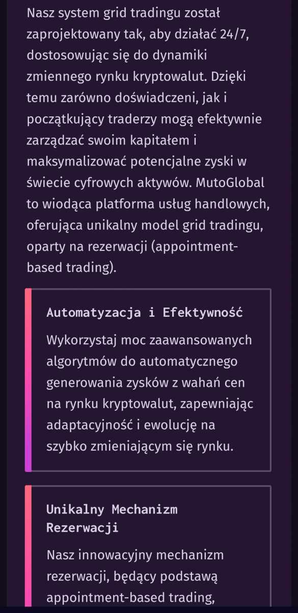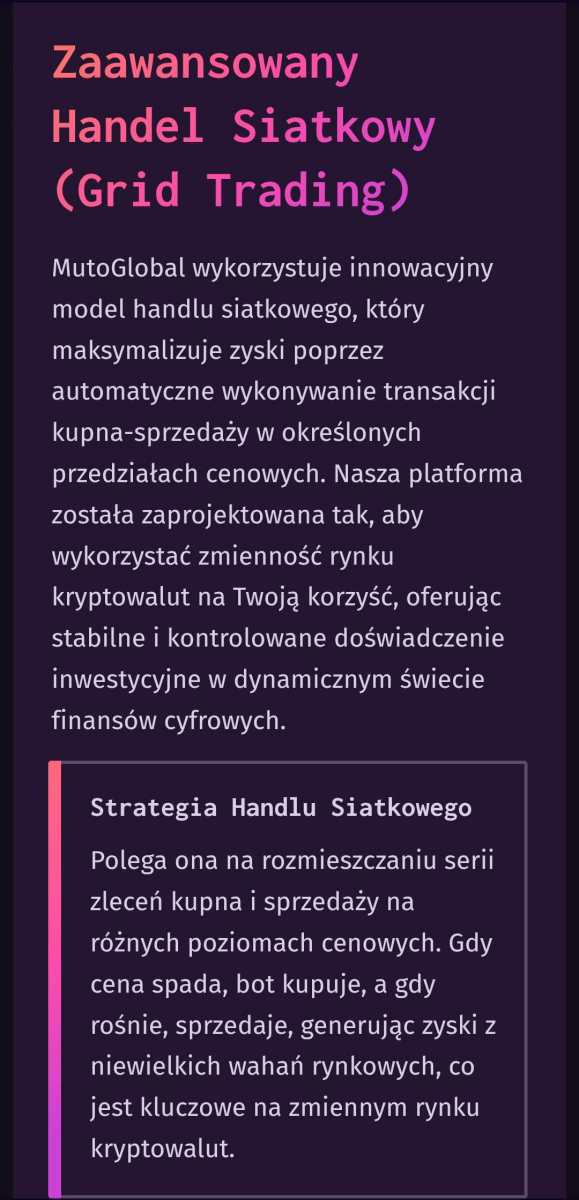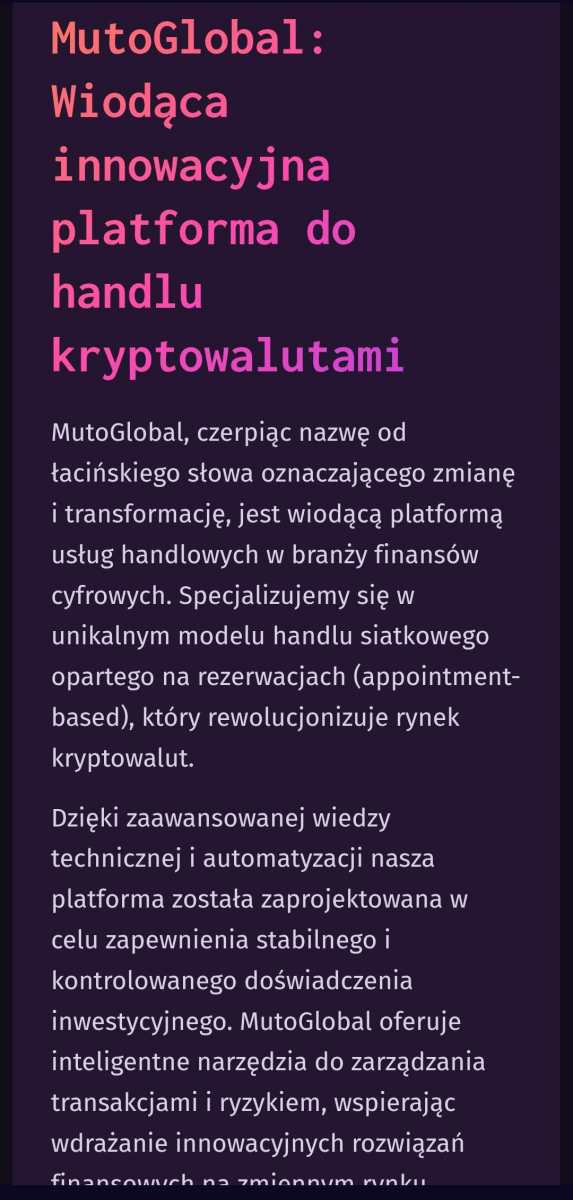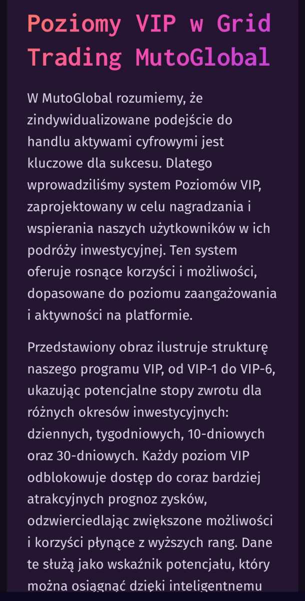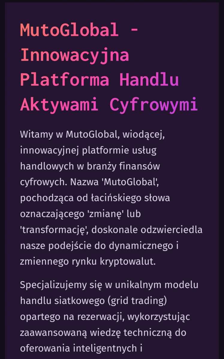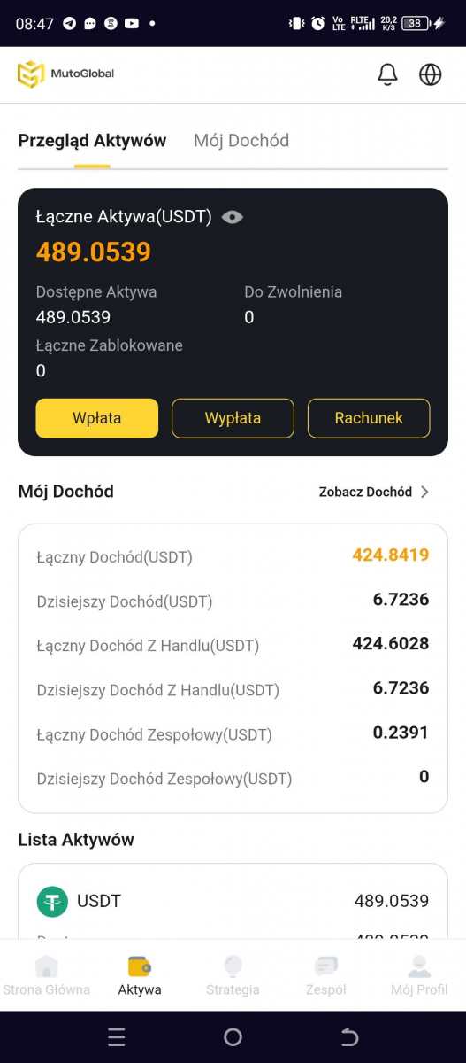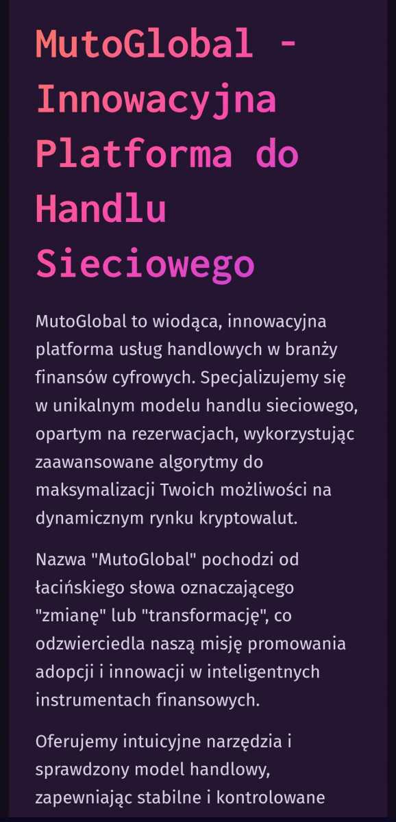 Witam przedstawiam pewną i sprawdzoną platformę istniejącą od 2lat posiadam równierz wszelkie dowody i służę pomocą wstępnie powiem że za rejestracje z linku powinniśmy dostać 5$ aby używać strategini mieć aktywne konto należy wpłacić minimum 50$ Link ref: https://mutoglobal.vip/reg?tid=LVP2E4 Link czysty:https://mutoglobal.vip