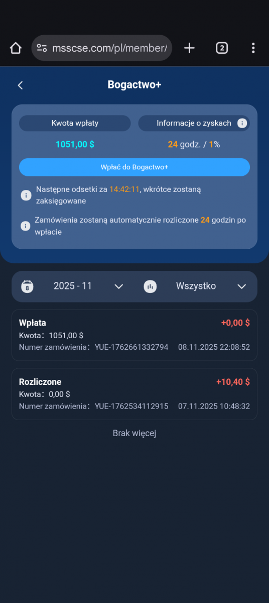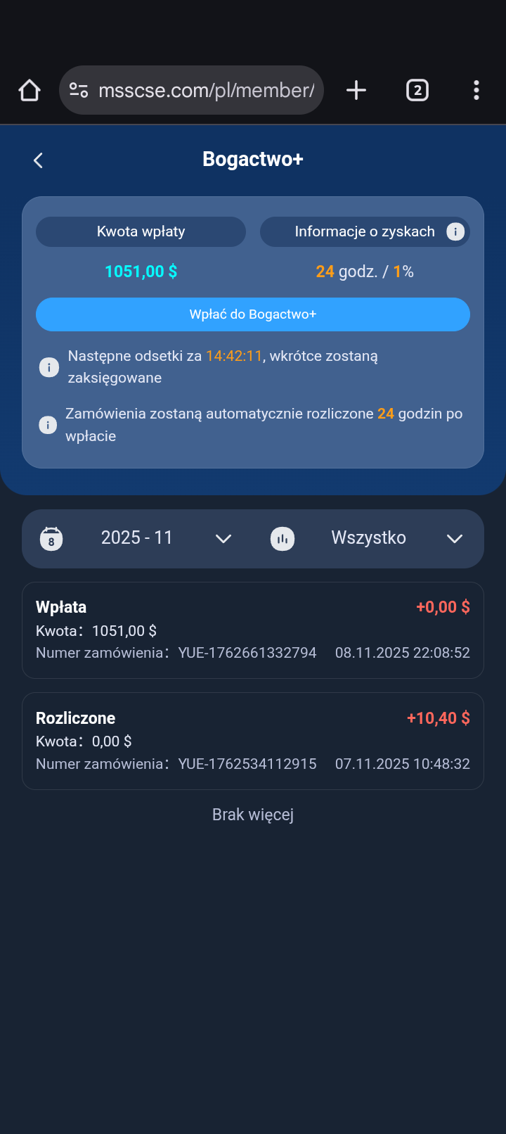 ✅ Po 5 dniach możesz wypłacić zarobek albo dołożyć 100$ i kontynuować.
