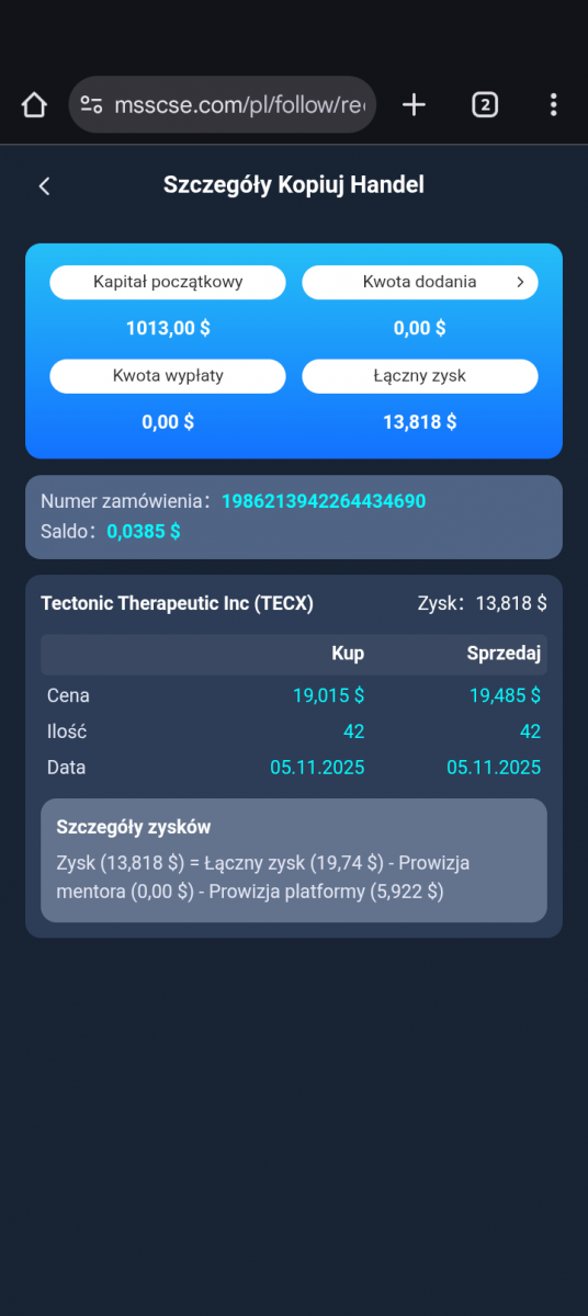Po rejestracji broker przyznaje bonus 1000$ na 5 dni nauki - to środki testowe, a zysk z kopiowania możesz wypłacić! 💸