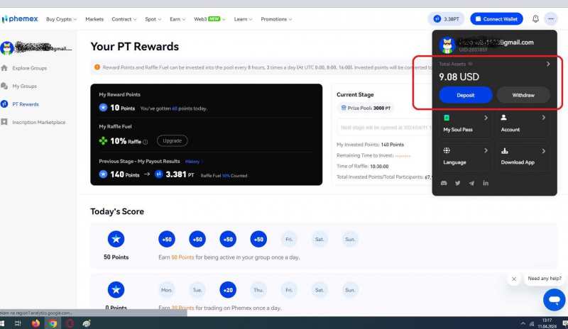 Na giełdzie Phemex jest akcja zbierania punktów, które można wymieniać na token giełdowy PT. Wymiana o określonych godzinach kto pierwszy ten lepszy.. Tylko można mieć problemy z wypłatą bez kyc. Dołączamy do grupy piszemy coś na czat i 50 pkt wpada raz na dzień plus za dowolny handel. Zgarniamy punkty i wymieniamy je na tokeny giełdowe $PT od Phemex! To chyba jedna z najprostszych akcji, aby zgarnąć trochę $$ całkowicie za darmo! 1 punkt = max do 5 $PT 1 $PT = ~0,86$ INSTRUKCJA: 1. Dołącz do Phemex zweryfikuj konto następne wybierz grupę i pisz dzienne jedną wiadomość na przykład o treści Cześć lub Hi. 2. Link do rejestracji: czysty - https://phemex.com/ 3. Zdobywaj punkty: 200 punktów za weryfikację KYC 50 punktów dziennie za napisanie wiadomości na naszej grupce 20 punktów dziennie za 1 trade 1 punkt za każde 10k$ wolumenu 10 punktów za zaproszenie nowej osoby do zabawy 4. Punkty wymieniamy w zakładce "PT Rewards" w systemie FCFS - wpisujemy do tabeli ilość punktów i klikamy INVEST i mamy po chwili już wymienialne tokeny na co tylko chcemy możemy je zbierać lub sprzedać i od razu wypłacić. 5. Codziennie możemy wymienić nasze punkty! 6. Każda z powyższych godzin ma pulę (1800 $PT), podzieloną na 3 Tiery (po 600 $PT) z różnym mnożnikiem punktów: Tier 1 - mnożnik x5 Tier 2 - mnożnik x0,5 Tier 3 - mnożnik x0,1 🔹 Codzienna pula tokenów wynosi 5900.337 $PT! UWAGA: Punkty można inwestować w pulę co 8 godzin, 3 razy dziennie (o godzinie UTC 0:00, 8:00, 16:00). Zainwestowane punkty będą przeliczane na PT codziennie o godzinie UTC 0:30/08:30/16:30. -