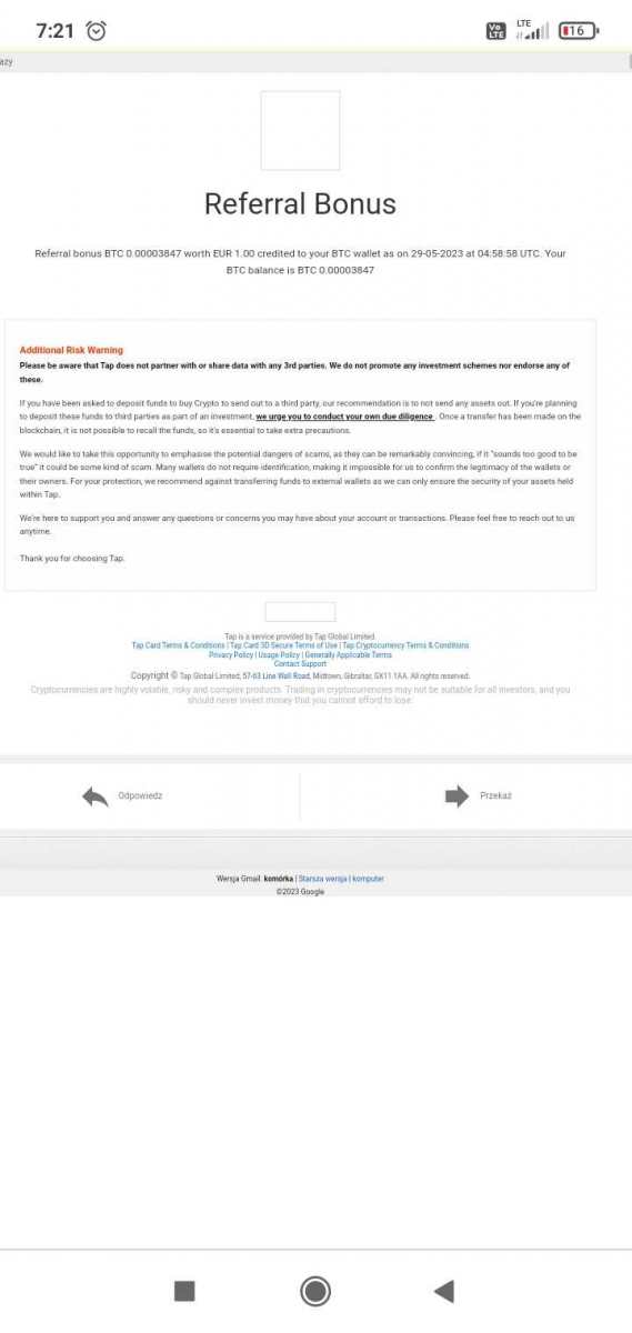 TAP GLOBAL - Nowa promocja - 1-100$ za KYC