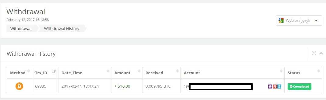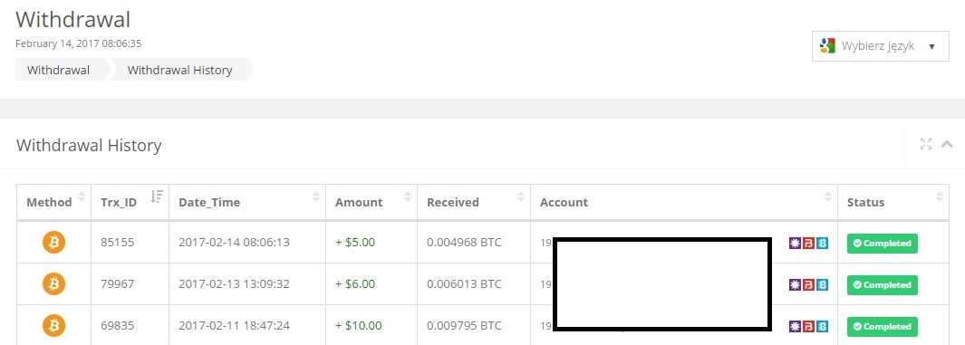Akceptowane systemy płatności: PerfectMoney, Bitcoin, Payeer, AdvCash Wypłaty: instant, w określonych przypadkach do 48h, minimum 0,10$