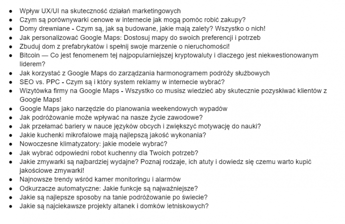 Rok 2023 nastał, a więc zapraszam do zapoznania się z ofertą mojej Bazy 400 Gotowych tekstów : ) na kolejne na 12 miesięcy. Baza się poszerzyła o nowe tematy i uzupełniła. Ceny zostają na razie te same, więc dla odmiany jakiś “Upsizing” : ) W tym wątku będę dodawał posty z późniejszymi paczkami, ofertami, promocjami. Oto co mam w ofercie: Teksty 6k zzs Artykuły Premium 10k zzs Serie 10 artykułów po 4,5k zzs Tematyki: SEO, E-marketing, Finanse, Dom i nieruchomości, Praca, Lifestyle Teksty są dobrej jakości, na zaplecza lub blogi. Są pisane ogólnie, więc można edytować Można kupić je bezpośrednio na giełdzie lub u mnie z FV (useme) Przy zakupie bezpośrednio, formatowanie treści, H2 itd. Teksty są unikalne, sprzedawane z pełnymi prawami autorskimi Pisanie na zamówienie od 15 zł brutto / 1k zzs (Jeśli jesteś zainteresowany, zapytaj na pw.) Lista aktualnych tekstów: https://docs.google.com/document/d/1To-3YvNMeSPhttNRVGLpsKEw_0I9dc-iy5e8BJ8dyMI/edit?usp=sharing Kup teksty sam: https://gieldatekstow.pl/text/buy/search,u_sMnzCz60b Udanego 2023 roku, szybkich wzrostów pozycji, samych answer boxów, jakościowego ruchu organicznego i dobrego contentu! : )