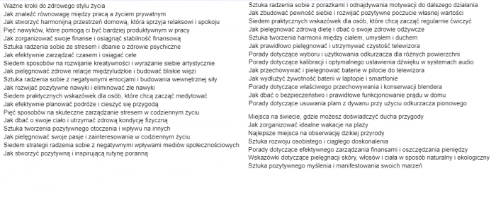 Wracamy po świętach Dostępne: 600 Gotowych Tekstów na sztuki i 5 paczek tekstów (Finanse, bezpieczeństwo w sieci, SEO, marketing, marketing). Spis tematów poniżej. KUP na sztuki : https://gieldatekstow.pl/text/buy/search,u_sMnzCz60b Paczki tematyczne, pisane przez człowieka, dobra jakość: Finanse 299 zł brutto 10k Wszystko o oszczędzaniu - Czym tak właściwie jest, dlaczego warto, jak to robić, o czym pamiętać 10k Nowoczesna bankowość czyli co? Poznaj wirtualne karty, wpłatomaty, blik czy płatności telefonem! Dowiedz się co dziś oferuje 10k Jak bezpiecznie używać swoich finansów elektronicznych? Garść porad! 10k Jak samodzielnie odłożyć na emeryturę? Sprawdź jak i dlaczego warto! Seria 10x 4,5k zzs, 45k zzs, 599 zł brutto 1/10 Seria art. Bezpieczeństwo w sieci — 1 Jak bezpiecznie płacić w sieci 2/10 Seria art. Bezpieczeństwo w sieci — 2 Zabezpieczenie sprzętu z którego korzystasz 3/10 Seria art. Bezpieczeństwo w sieci — 3 Pobieranie i instalowanie aplikacji oraz programów 4/10 Seria art. Bezpieczeństwo w sieci — 4 Próby wyłudzenia dostępu do bankowości internetowej 5/10 Seria art. Bezpieczeństwo w sieci — 5 Typy oszustw na portalach ogłoszeniowych gdy kupujesz. Sprawdź na co jesteś narażony! 6/10 Seria art. Bezpieczeństwo w sieci — 6 Zagrożenia na portalach ogłoszeniowych gdy sprzedajesz 7/10 Seria art. Bezpieczeństwo w sieci — 7 Atrakcyjne oferty pracy w sieci gdzie możesz stać się “słupem” 8/10 Seria art. Bezpieczeństwo w sieci — 8 Chroń swoją prywatność w sieci 9/10 Seria art. Bezpieczeństwo w sieci — 9 Znajomości internetowe 10/10 Seria art. Bezpieczeństwo w sieci — 10 Co zrobić w razie kłopotów? Seria 8x 4,5k zzs, 45k zzs, 499 zł brutto 1/8 Seria art. Jak współpracować z Agencją SEO i dlaczego warto – Agencje SEO – czym tak właściwie są? 2/8 Seria art. Jak współpracować z Agencją SEO i dlaczego warto – Jak wyszukać i wybrać najlepszą agencję SEO 3/8 Seria art. Jak współpracować z Agencją SEO i dlaczego warto – Jak zlecać pozycjonowanie strony WWW - Brief 4/8 Seria art. Jak współpracować z Agencją SEO i dlaczego warto – Dowiedz się jakie są 3 typy umów o pozycjonowanie i którą wybrać 5/8 Seria art. Jak współpracować z Agencją SEO i dlaczego warto – Jak sprawdzać i weryfikować pracę agencji SEO 6/8 Seria art. Jak współpracować z Agencją SEO i dlaczego warto – Dlaczego warto zlecać wszystkie usługi reklamy w sieci agencji SEO 7/8 Seria art. Jak współpracować z Agencją SEO i dlaczego warto – Usługi podstawowe jakie oferują agencje SEO 8/8 Seria art. Jak współpracować z Agencją SEO i dlaczego warto – Sprawdź jak wspomagać działania agencji SEO Paczka Marketing 499 zł brutto 10k 5 Mitów i błędnych przekonań o digital marketingu. Poznaj je i rozpraw się z nimi! 10k Jak mądrze oszczędzać na marketingu internetowym? Sprawdź te podpowiedzi! 10k Dlaczego warto tworzyć konkurencję dla własnej firmy w danej branży e-commerce? Poznaj te korzyści! 10k Cele w biznesie i marketingu — Dlaczego warto i jak wyznaczać cele? 10k Long-form contnet - Czym są “długie treści”, jak je tworzyć oraz dlaczego i kiedy je stosować? 10k Jak nauczyć się blogować? 5 krótkich porad które stworzą z Ciebie rasowego bloggera! 10k Dlaczego warto optymalizować treści pod kątem SEO, dodając je na stronę? Dowiedz się też jak to robić! Mała Paczka Marketing 299 zł brutto 6k Personal Branding - Jesteś freelancerem, pracownikiem czy twórcą? Inwestuj w siebie, zwiększaj wartość i buduj swoja markę! 6k Inbound Marketing — daj się znaleźć klientom w sieci! 6k Webinarium marketing - Czym jest ten nowy trend, jakie ma plusy i jak wykorzystać go do promowania własnej marki? 6k Eko Marketing - Sprawdź czym jest coraz popularniejszych “Zielony Marketing” i jak przyciągać swoją “eko” postawą klientów! 6k Real-time marketing - Czym jest i dlaczego warto go wykorzystywać? 6k 4 formy reklamy w Google - Pozycjonowanie, płatne wyniki wyszukiwania, reklamy display i YouTube. Sprawdź jak reklamować w Google 6k Remarketing w Google Ads - zadbaj też o klientów którzy byli na stornie, ale nic nie kupili! Kontakt: gordongraycv@gmail.com Dane wystawcy FV: Setugo Sp. z o. o. ul. A. Brody 88B, 43-450 Ustroń NIP: 5482669476 | REGON: 361463358 | KRS: 0000557140 Kapitał zakładowy: 5000 zł
