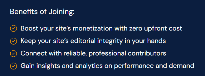 Właściciele stron doceniają przede wszystkim brak konieczności aktywnej sprzedaży. Po dodaniu serwisu do systemu i określeniu warunków publikacji, zamówienia mogą pojawiać się automatycznie. Dla wielu wydawców jest to ogromna oszczędność czasu, szczególnie jeśli prowadzą kilka lub kilkanaście serwisów jednocześnie.