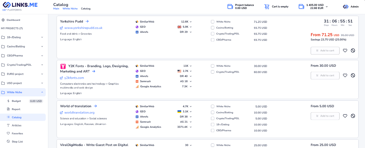 Links.me to zaawansowany marketplace, który umożliwia zarabianie właścicielom stron internetowych poprzez publikację artykułów sponsorowanych i treści z linkami zwrotnymi. W praktyce oznacza to, że jeśli prowadzisz blog, portal lub inną witrynę z ruchem, możesz dodać ją do katalogu platformy, a następnie otrzymywać oferty od reklamodawców zainteresowanych publikacją swoich materiałów na Twojej stronie. Links.me analizuje ponad 40 parametrów każdej strony, takich jak ruch, tematyka, źródła odwiedzin czy dane SEO, co ułatwia dopasowanie ofert do odpowiednich wydawców.