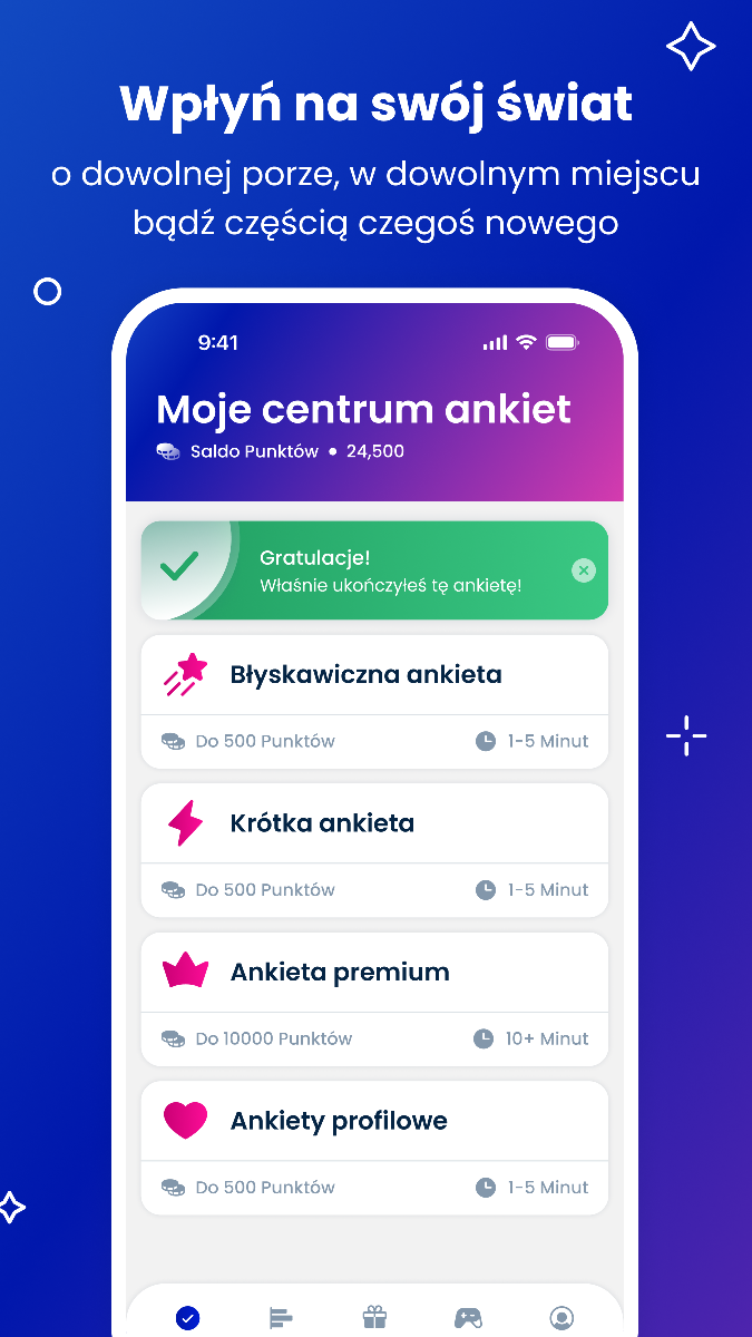 Przeważnie na jednej ankiecie możesz zdobyć od 15 do nawet 20.000 punktów. Ich ilość zależy głównie od trudności oraz długości ankiety. W większości przypadków jedna ankieta zajmie Ci 15-20 minut.