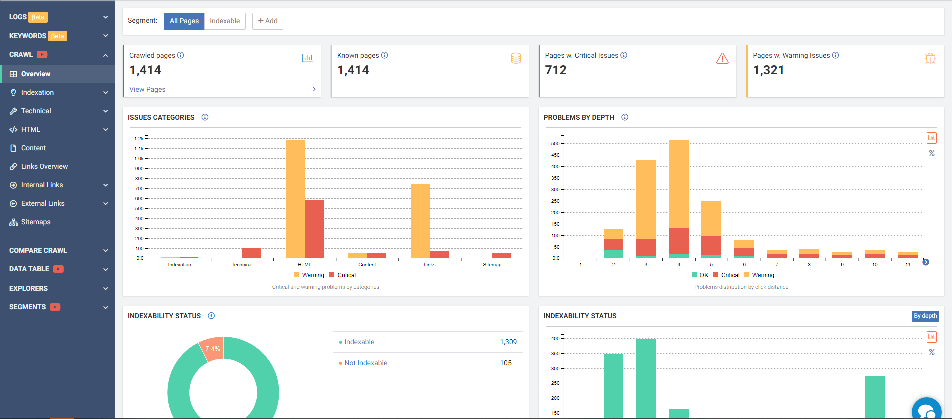JetOctopus nie próbuje być wszystkim naraz. Nie znajdziesz tu rozbudowanego modułu link buildingu czy śledzenia pozycji w stylu klasycznych trackerów. Zamiast tego dostajesz precyzyjne odpowiedzi na pytania, które w praktyce decydują o tym, czy strona rośnie, stoi w miejscu czy traci widoczność.