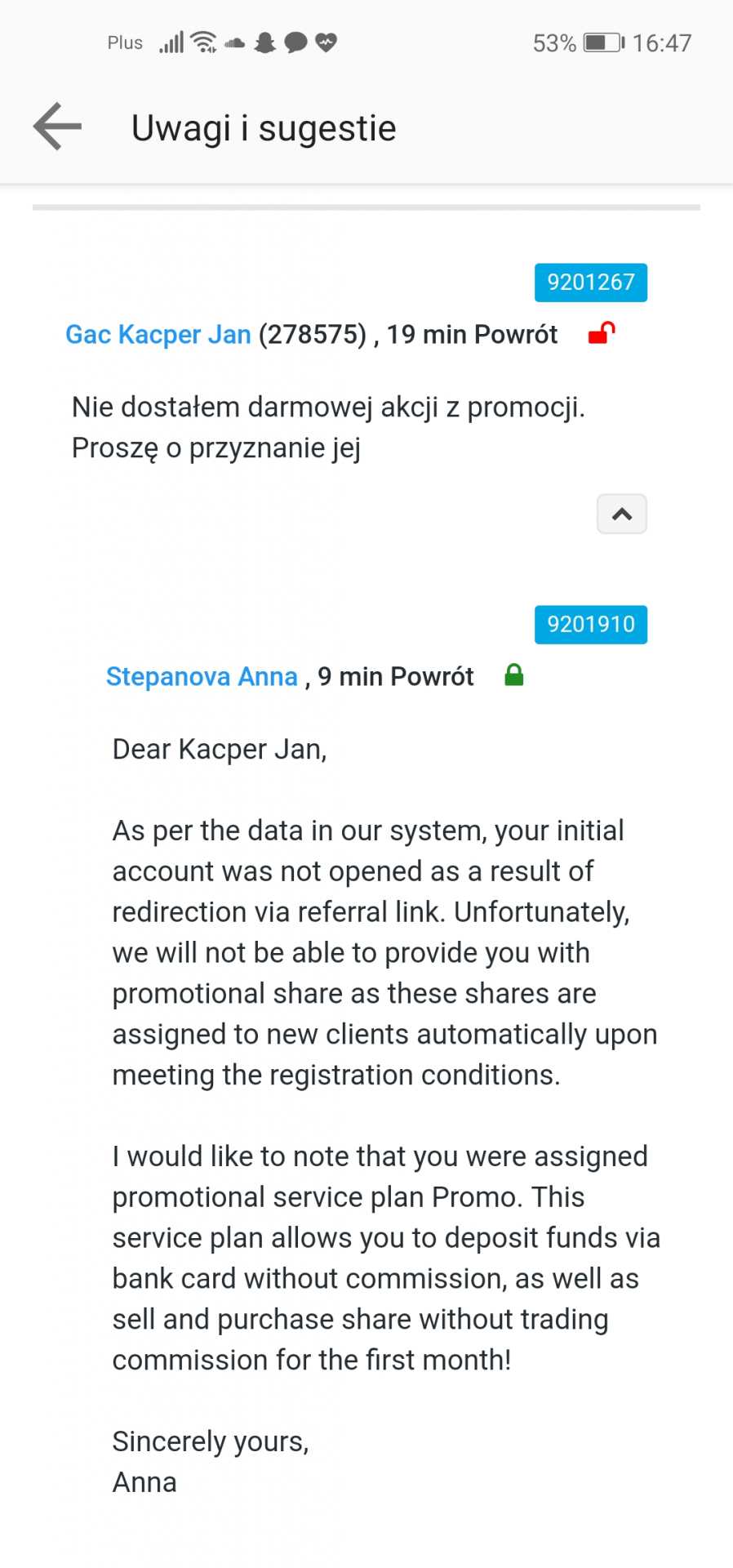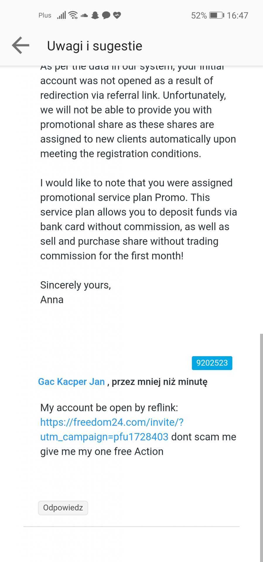 5. Otworzyłem konto ale nie widzę nigdzie akcji konto założyłem z reflinku pomoże ktoś? Scam jak członek otworzyłem konto z linku support mu odpisał że konto nie otwarte za pomocą reflinku a było