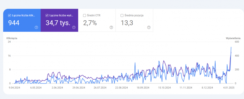 Cześć, Zakładam swój dziennik pracy, bo zaczynam działać w temacie rozkręcenia własnych sieci portali pod sprzedaż artykułów sponsorowanych / być moze kiedyś linkowania własnych klientów. Jest tutaj na forum dziennik Michała, który w niedawnym czasie wydał ebook poświęcony tej tematyce, o którym jest całkiem głośno w SEO świecie - nie mam nic wspólnego z Michałem oraz nie kupiłem jego ebooka. Zastanawiałem się, z resztą nadal się zastanawiam i być może kiedyś go kupię, bo może znajdę tam coś ciekawego. Prawdę mówiąc ten pomysł chodzi mi po głowie od lat, nawet z 5 lat temu próbowałem stawiać stronę w tym celu, ale szybko mi minęło . Dwie z domen opisywanych niżej kupiłem na początku 2024 roku, jeszcze przed publikacją ebooka. Michała traktuję trochę jako inspirację w tym temacie i będę dążył do osiągnięcia zbliżonych wyników. A żeby się udało, to przyda mi się trochę systematyczności, w czym pomoże ten dziennik. O mnie SEO interesuję się już ze 13 lat, odkąd to w gimnazjum zaczynałem działać w popularnym w tamtym czasie PPA i stawiałem strony pod USA, żeby zarabiać na programach partnerskich. Od około 8 lat w pracy zawodowej zajmuję się SEO (kiedyś jako dodatek, teraz tylko i wyłącznie). Od 2020 roku prowadzę działalność i mam własną firmę świadczącą usługi SEO dla klientów. Od 1.5 roku zatrudniam jednego pracownika na pełen etat, który wspiera mnie z działaniami. Nie mam sprzedawców, prawników, mamy kilkunastu klientów, a to co opisałem w tym zdaniu odróżnia nas od dużych, znienawidzonych SEO korpo, w których pierwszy kontakt jest świetny, a ostatni niemożliwy bo cały czas upominają się o płatność i karę Wiadomo - chciałbym się rozrastać i taki jest plan, ale ciężko jest dobrze ogarnąć nawet tych kilkunastu klientów we dwóch i jeszcze dbać o swoje tematy / szukać klientów / robić coldcalle czy coldmailing. Nie robię SEO za 600zł, bo wiem, że to nie ma sensu, ale też nie mam klientów po 10k. Dlaczego ta metoda zarabiania? Mam wiedzę i środki, by rozwijać też swoje portale, zamiast w 100% SEOwać klientów. Myślałem o własnym ecommerce czy dropshippingu, nawet coś tam kiedyś postawiłem, ale generalnie nie czuję tego. Mimo wszystko prowadzenie sklepu internetowego nawet w dropie wymaga odpowiednich umiejętności (albo braku ich w czymkolwiek innym więc łapiemy się czego się da lub co guru zareklamuje). Znam się na SEO i postanowiłem 100% się w tym realizować. W ecommerce przyda się moje SEO, baa, jak będzie super to pozwoli zarobić, ale obok tego dojdą też inne działania, którymi trzeba się zająć - stany, kontakt z klientem, negocjacje cen itp. To trzeba lubić albo przynajmniej mieć smykałkę. Ja handlowałem 2 lata na allegro własnym towarem i mi wystarczy Drugim powodem jest fakt, że SEO jest tak zmienne, klienci, szczególnie tych kilkunastu nie jest na tyle pewnych, żeby móc długoterminowo planować życie. Rozwijając jednocześnie agencję (tj. szukajac nowych klientów, ewentualnie zatrudniając innych pracowników i skalując biznes) chcę jeszcze inaczej zdywersyfikować dochody - tj. zarabiać na tym, że inne agencje mają klientów na SEO i to oni będą u mnie kupować publikacje. Sam miesięcznie wydaję kilka tysięcy na giełdach i wiem jak jest to ważne U samego Michała już bankowo ponad dychę zostawiłem Trzeci powód to taki, że ogarniam Wordpressa i tworzenie stron internetowych. Postawienie wordpressa od momentu kupienia domeny po jego skonfigurowanie żeby to fajnie i naturalnie wyglądało to 2-3 godzinki pracy (btw to kolejna odnoga biznesu, którą chcę rozwijać w celu uniezależnienia się od klientów agencji na usługi SEO). Dodatkowo moja żona, która jest pielęgniarką, obecnie w ciąży więc ze dwa lata posiedzi w domu, marzy aby po macierzyńskim nie wracać już do pracy w szpitalu, tylko mieć "czystą, fajną prackę" i obecnie klepiemy wordpressa i ostatnią zapleczówkę postawiła ona pod moim okiem. Jakby się wkręciła to będą dodatkowe ręce do pracy Aktualny stan na styczeń 2025 Dziennik ten będzie dotyczył tylko mojej jednej działalności czyli stawiania portali pod art. sponsorowane. Nie będę tutaj publikował aktualizacji o całej mojej firmie. Posiadam obecnie 4 domeny, które kupiłem w tym celu. 3 na rynek PL i 1 USA. Domena 1: Książki, lifestyle Jest to domena expirka, na której była postawiona przez wydawnictwo strona o pewnej pisarce i jej książkach. Są backlinki z różnych sklepów internetowych z książkami. Domena kupiona już dawno bo prawie rok temu, ale tak wisiał tam czysty wordpress. W SERPach jest wysoko na nazwisko autorski stąd było kilka klików dziennie. Rozwijam ją dopiero od miesiąca, udało się sprzedać 3 artykuły sponsorowane na których zarobiłem 160zł netto. Kliki z wczoraj to jakiś dziwny pik, zapowiada się, że dziś wróci do dolnych wartości. Liczba postów: 19 Domena 2: Uroda, lifestyle Expirka po podobnym tematycznie blogu, który nie mógł się wybić i łapał po 100 uu miesięcznie. Odtworzyłem stare posty + dodaje swoje. Ta podobnie - kupiona rok temu, stał tam wordpress, dopiero w tym miesiącu zacząłem ją grubiej coś tam ogarniać. Sprzedała 1 artykuł na którym zarobiłem 60zł netto. Liczba wpisów: 41 Domena 3: zdrowie, medycyna, uroda Kupiona 2 miesiące temu i nie było nic robione. W tym tygodniu postawiliśmy tu wordpressa, dziś poszły pierwsze 3 wpisy na nią. Fajna domenka po jakiejś przychodni, nadal wpisując "kardiolog MIASTO" jest przy mapce wizytówka lekarza, gdzie klikając w "strona" jest link do niej. Najfajniejszy backlink mimo, że nofollow, ma z mp.pl tu nic nie ma, nic nie zarobiła Liczba wpisów: 3 Strona 4: USA, technologiczna Edytuję wpis i dodaję jeszcze tą stronę, bo o niej zapomniałem. To nie jest expirka, to jest domena zawierająca bazowy keyword 