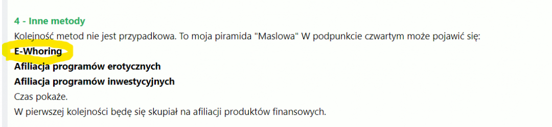 Hej, Nie będę się za bardzo rozpisywał, bo sam nie lubię czytać ściany tekstu. Zmobilizowałem się w końcu i postanowiłem zabrać się za realizację swoich pomysłów. Na początek zabieram się za jeden projekt, bo zawsze zaczynałem 10 rzeczy w tym samym momencie i do niczego dobrego to nie prowadziło. Na pierwszy ogień idzie erotyka. Podziałam w 3 serwisach: MyLead, FireAds i LeadNetwork. W każdym z wymienionych serwisów mam jakieś drobniaki, więc wypadałoby dobić do wypłaty, przy okazji testując programy. Cel ustalam sobie na dniówkę wynoszącą 50zł, utrzymującą się minimum 7 dni z rzędu. Jeśli cel zostanie zrealizowany, wtedy zacznę kolejny projekt. Wpisy będą się pojawiać raz w tygodniu w niedzielę wieczorem. Uważam to za dobry czas na podsumowanie tygodnia oraz ustaleniu celów na kolejny.