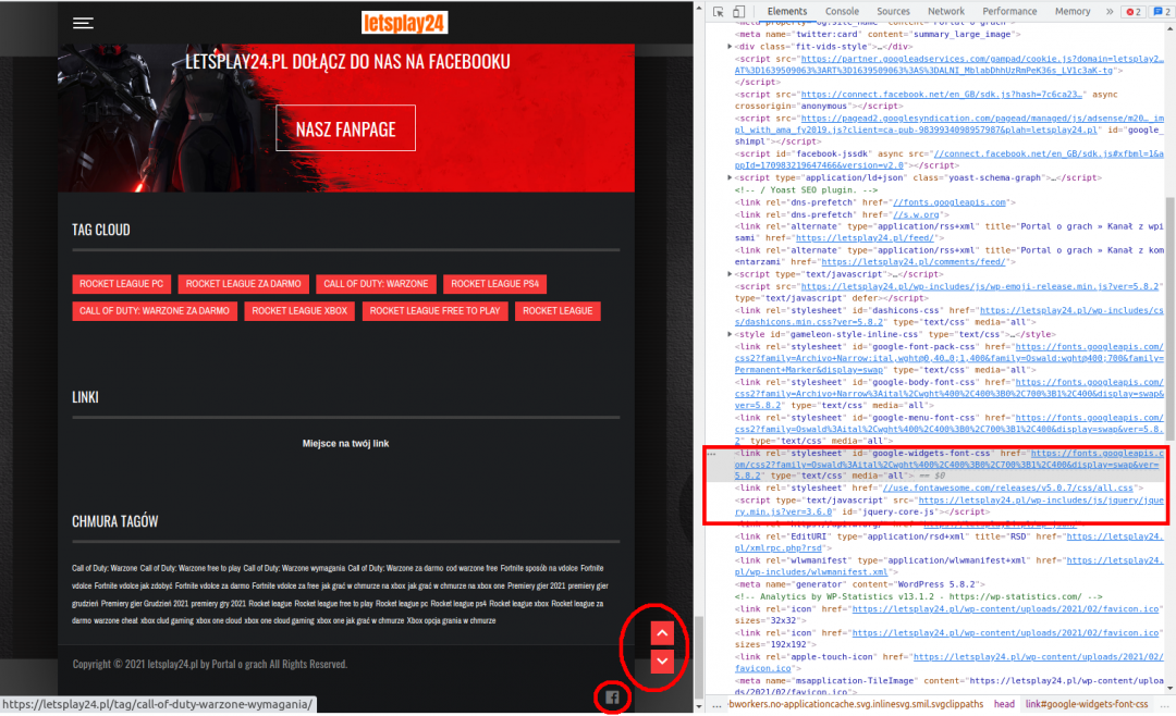 @kukiz87 Przeglądając Twoją stronę na szybko masz tam masę bezużytecznych dodatków i pluginów które nie są Ci teraz potrzebne (na tym etapie) Zadbałeś o Yoasta, analitykę, ale nie masz nawet fontów w szablonie. po: <link rel="stylesheet" id="google-widgets-font-css" href="https://fonts.googleapis.com/css2?family=Oswald%3Aital%2Cwght%400%2C400%3B0%2C700%3B1%2C400&display=swap&ver=5.8.2" type="text/css" media="all"> dodaj: <link rel="stylesheet" href="//use.fontawesome.com/releases/v5.0.7/css/all.css">