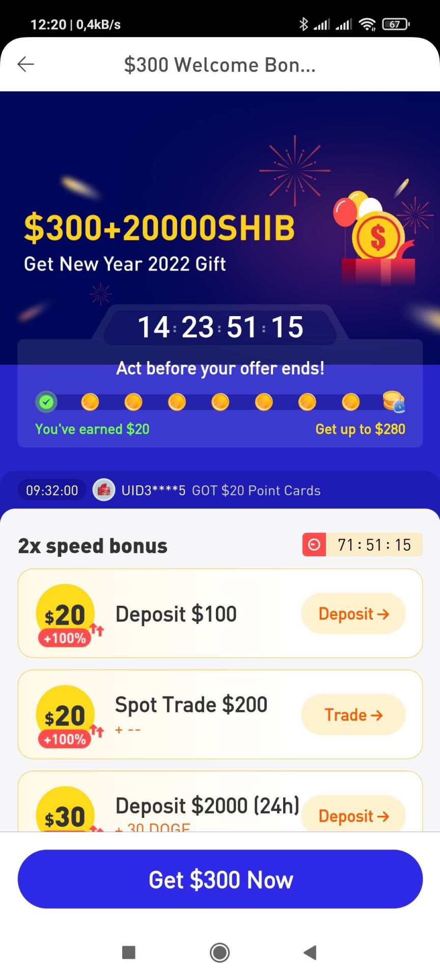 Huobi wallet rozdawało ostatnio NFT teraz na święta ( już po świętach ale dalej jest ) rozdaje do 300$, za rejestrację 20$ za utworzenie portfela cloud 10$ taki jak na trust wallet binance Smart chain, za depozyt i trade o danym wolumenie. Ref : https://www.huobi.mw/en-us/topic/double-invite/register/?invite_code=z8nf4223&name=Iron Man&avatar=12 Czysty : https://www.huobiwallet.com/en/h5