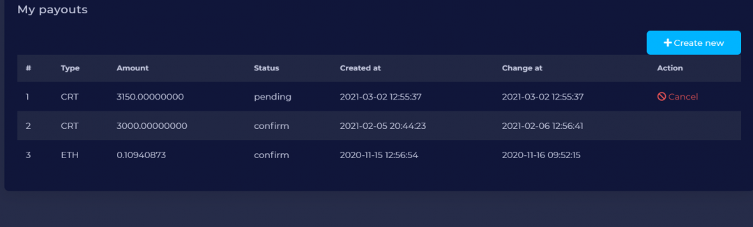Potwierdzam również wypłaciłem ostatnim czasem te 3000 CRT bo tyle można a następną wypłatę mogę zlecić dopiero za miesiąc. I wcale się nie dziwię że wszyscy od razu sprzedają sam należę do tej grupy osób Dual Mine ostatnim czasem akcją typu koniec w wypłatami w crypto w której się wykupiło moc a narzucenie wypłaty w ich walucie CRT i to jeszcze w proporcjach 3 krotnie mniejszych niż wartość wydobytych monet przybiła sobie łatkę SCAM-u więc i ja jak tylko mogę to sprzedaje CRT aby móc wypłacić chociaż to co tam wsadziłem i być na 0. Później co prawda potrzymam ich walutę i zobaczę co będzie się z nią dziać. Oczywiście rozumiem ich że może chcą dobrze i faktycznie chcą umocnić swoją walutę itp. życzę im aby fatycznie doszła do wartości dolara i abyśmy wszyscy byli zarobieni. Ale należy również pamiętać że mogą zamknąć stronę nawet jutro i nikt już nie zobaczy kasy także polecam wstępnie zastanowić się poważnie nad dalszymi inwestycjami na tej stronie.