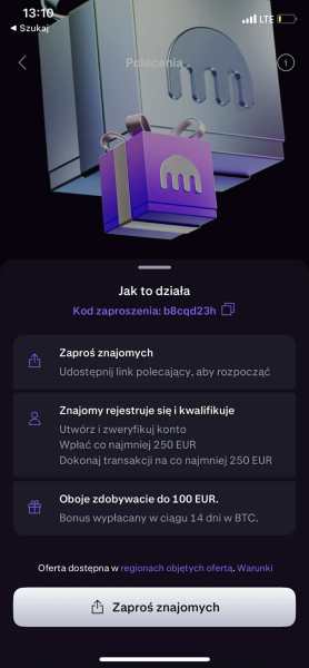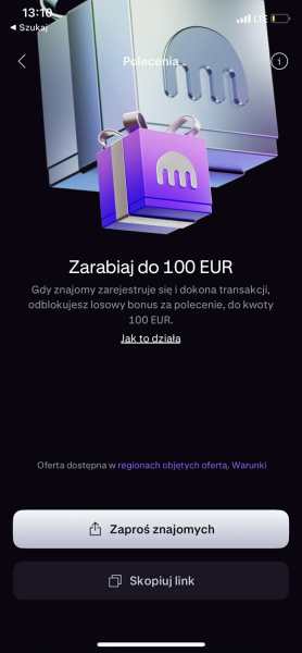 Mój REFBACK (20 EUR): W ramach podziękowania za skorzystanie z mojego linku, oddaję Ci część mojego bonusu! Przeleję Ci dodatkowe 20 EUR w ciągu 14 dni (możemy dogadać się na BLIK, Revolut lub przelew w krypto - jak Ci najwygodniej).