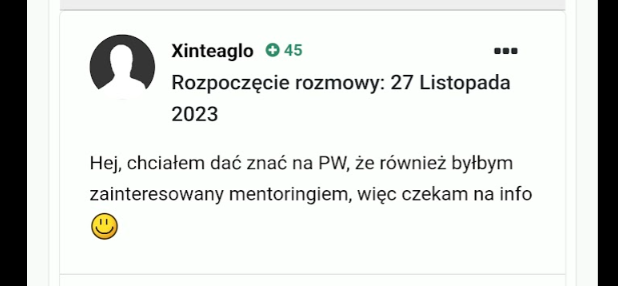 A tutaj dla zainteresowanych jak wygląda kontakt na PW z moim mentorem.