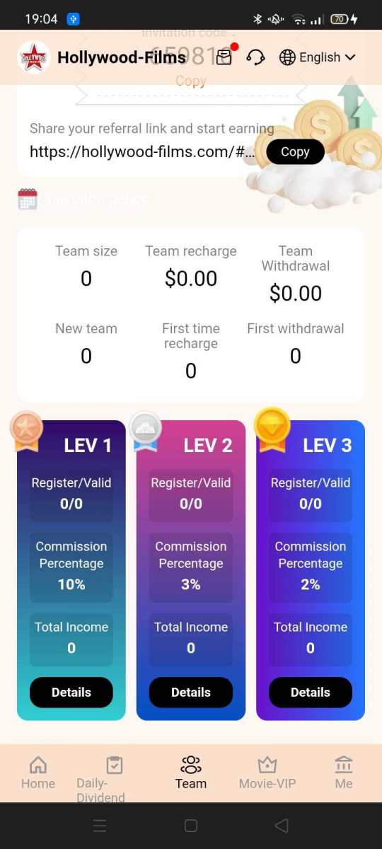 1. reflink: https://hollywood-films.com/#/register?ic=659810 czysty: https://hollywood-films.com/#/ Przy inwestycji 15$usdt mozemy uzyskac 3$usdt dziennie Stronka od typa który stworzył kuwait oil