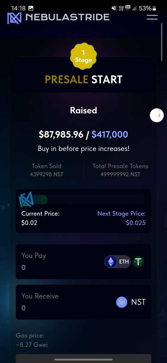 Tak dla utrzymania aktualności obecnie zebrane w projekcie jest około 88 tys $ ja sam uzbierałem ponad 100 tys pkt do airdropa i ponad 100 poleconych. Kupiłem także 5000 tokenów o wartości 100$. Pojawiło się także kilka nowych artykułów na zagranicznych stronach ale raczej takie promocyjne bardziej. https://coingape.com/ethereum-stagnates-under-4k-but-this-new-token-promises-massive-gains/ https://cryptodaily.co.uk/2025/01/nebula-stride-the-starting-point-for-a-new-cryptocurrency-era