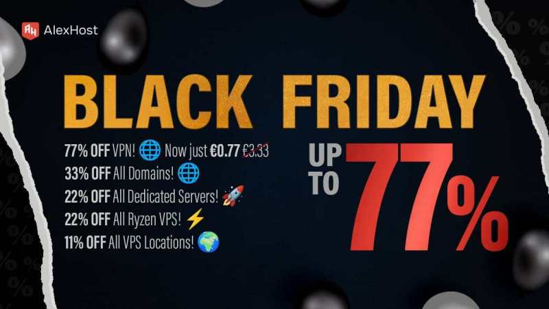 Szał Czarnego Piątku w AlexHost 🥳 😎 Nadszedł sezon oszczędności i AlexHost, odwiedź naszą stronę internetową: https://alexhost.com/ Niezależnie od tego, czy jesteś właścicielem małej firmy, programistą, czy kimś, kto buduje kolejną wielką rzecz, mamy dla Ciebie idealną ofertę 🤡 Zniżki na Black Friday, których nie można przegapić VPN - 77🛍 zniżki z kodem promocyjnym: AHVPN 🌎 Domeny - 33🛍 zniżki z kodem promocyjnym: AHDOMAIN Certyfikaty SSL - 33🛍 Wyłączone. Kod promocyjny: AHSSL ☄️ Plany VPS Ryzen - 22🛍 zniżki z kodem promocyjnym: AHRYZEN Serwery dedykowane - 22🛍 zniżki z kodem promocyjnym: AHDEDI Hosting współdzielony/Litespeed - 22🛍 Zniżka z kodem promocyjnym: AHHOSTING VPS we wszystkich lokalizacjach - 11🛍 Off Kod promocyjny: AHVPS Plany hostingowe: https://alexhost.com/litespeed/ Plany VPS: https://alexhost.com/vps/vps-europe/ Serwery dedykowane: https://alexhost.com/dedicated-servers/ Dostępne specjalne oferty dla administratorów! Uzyskaj profesjonalną migrację, konfigurację i wsparcie administratora podczas tej promocji. Utwórz zgłoszenie tutaj: https://bill.alexhost.com/tickets/new/ Nie czekaj - zacznij oszczędzać już dziś! Oferty takie jak te w Czarny Piątek nie trwają wiecznie! Zabezpiecz swój plan hostingowy już teraz i ciesz się najwyższą wydajnością w bezkonkurencyjnych cenach.- 34 odpowiedzi