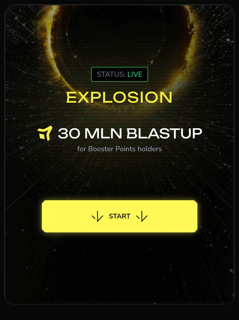 BlastUP to pierwszy launchpad w sieci Blast oferujący bezpieczną, zdecentralizowaną i przyjazną dla użytkowników platformę dla projektów na wczesnym etapie rozwoju, aby pozyskiwać kapitał. Dzięki swojemu Programowi Incentives Community, BlastUP nagradza aktywnych użytkowników możliwością "Szybszego wzrostu, większej liczby zarobków". To, co czyni BlastUP unikalnym, to jego integracja w ramach ekosystemu Blast, zapewniająca natywne dochody i innowacyjne mechanizmy DeFi. Dzięki temu BlastUP oferuje znaczące nagrody i przewagę konkurencyjną, co sprawia, że jest to najlepszy wybór zarówno dla projektów, jak i uczestników. BlastUp rozdysponuje 30 000 000 tokenów BLASTUP do uczestników airdropu. Odwiedź ich stronę airdropu i wykonaj pięć prostych kroków, aby zakwalifikować się do airdropu. ref: https://airdrop.blastup.io/?ref=ayQDiZjv czysty: https://airdrop.blastup.io