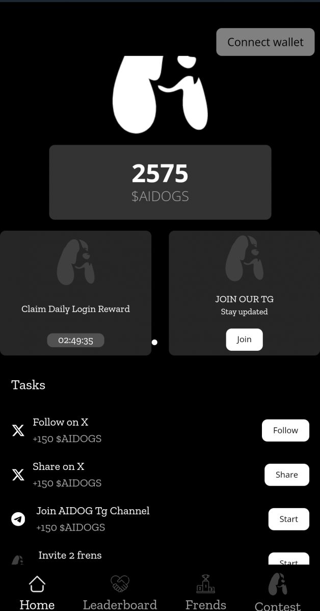 Kwalifikują się wszyscy, którzy otrzymali $DOGS. Można też zbierać punkty za różne proste aktywności. ref: http://t.me/Aidogs_bot?start=144db864 Czysty: http://t.me/Aidogs_bot