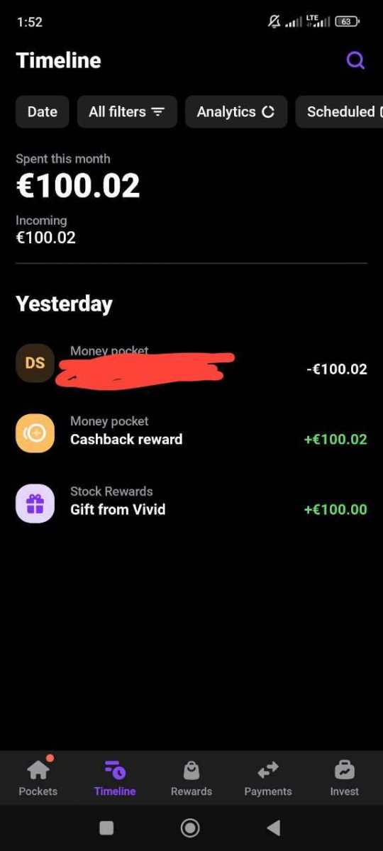 2. Cześć, promka z vivid gdzie dwie osoby dostana prezent za wykonanie zadania przez osobę poleconą. Czysty: https://vivid.money/en-eu/ Ref: https://vivid.money/r/damian9SM?utm_campaign=vir_706&utm_source=vir Wydanie 3x10€ kazda w innym dniu musisz zrobic to w ciagu 90 dni po zrobieniu 3 transakcji wpada akcja o wartosci rownej 100€ ktora mozna spieniężyć odrazu i przelac, wykorzystac lepiej raz dwa zanim zmienia na mniejsze nagrody. Pozdrawiam Dowod wyplaty: