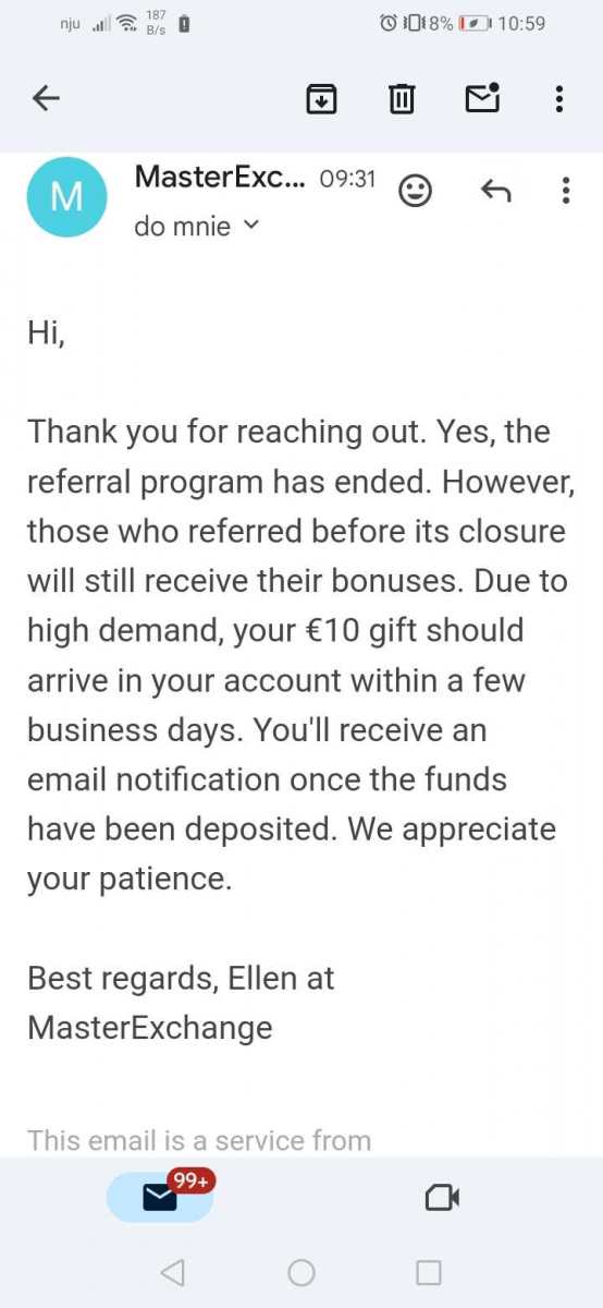 [SCAM] Masterexchange 10€ + 10€ za polecenie
