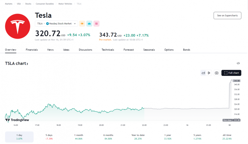 Coś mi tu nie gra dziennik założony w środę, a ATH na tesli czyli te 359 USD było w poniedziałek. Przecież cena akcji tesli 359 USD za sztukę była 11.11.2024, a dziennik założyłeś 13.11.2024, a 14.11.2024 dodajesz informację, że sprzedałeś akcje tesli po 359 USD jaki cudem? Skoro cena w 14.11.2024 wachała się między 310-329$? Jedyne wyjście to, że kupiłeś akcje tesli w poniedziałek i je sprzedałeś tego samego dnia, i dopiero w czwartek o tym piszesz XD. Jeśli kupiłeś akcje w środę i sprzedałeś je w czwartek to straciłeś trochę kaski, a post na forum wszystko przyjmie, może wstaw screen zamknietej pozycji z tym 359$ po sztuke. -