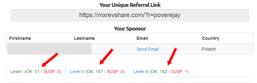 Tak program spisuje się rewelacyjnie. W tym roku bardzo prawdopodobny również event w Polsce z Adminem Technicznym Janusem Nowakiem oraz Jamesem Lee Valentine. Obecne ważne zmiany to wypłaty "instant" - natychmiast na Payza. Jak widać po screenach z mojego biura w MxRevshare platforma cieszy się sporą popularnością. Drugi screen pokazuje moją strukturę w III poziomach gdzie jest już około 350 osób. Do dziś wypłacone 835$ ale przy ciągłej też reinwestycji. Jeżeli osoby zainteresowane wspołpracą z MxRevshare się ze mną skontaktują to pokieruje je do nowych informacji, dołączę również do grupy naszej na Skype oraz FB. Jest tam również bardzo dobry przekaz informacyjny.