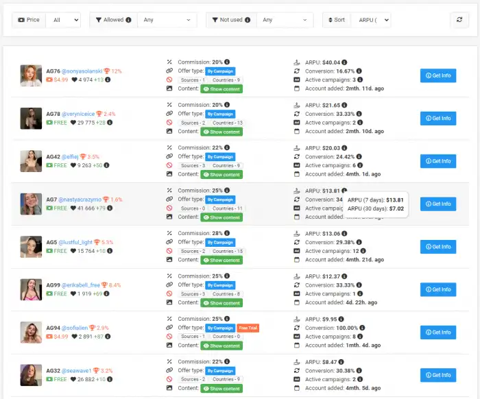 Jest to swietna okazja jesli ktos promuje modelki z onlyfans nie trzeba sie juz z nimi kontaktowac osobiscie,mamy liste modelek z ktorymi mozemy wspolpracowac.