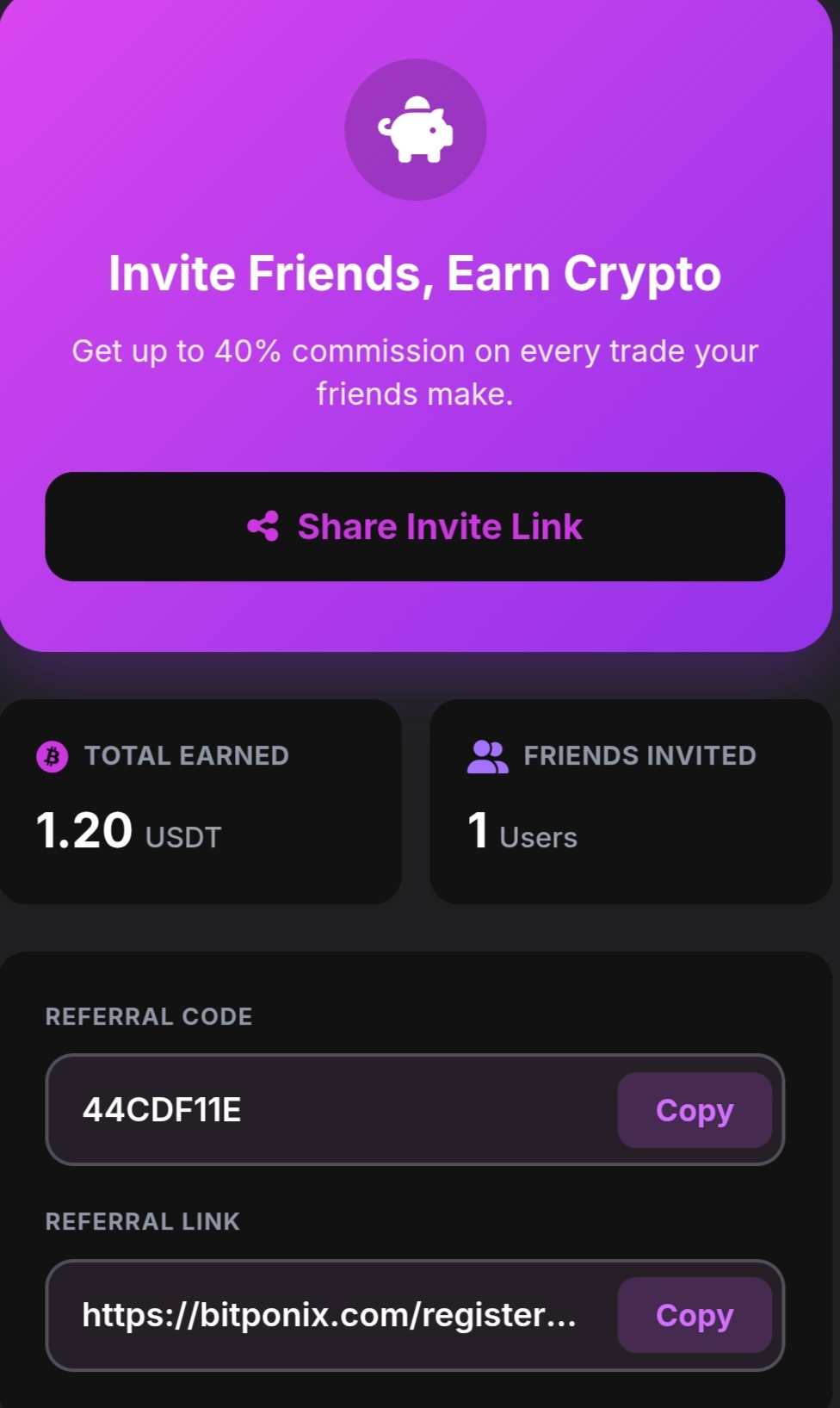 [REFBACK] BITPONIX - 1 USD ode mnie za rejestrację z linka + wykonanie jednej tranzakcji