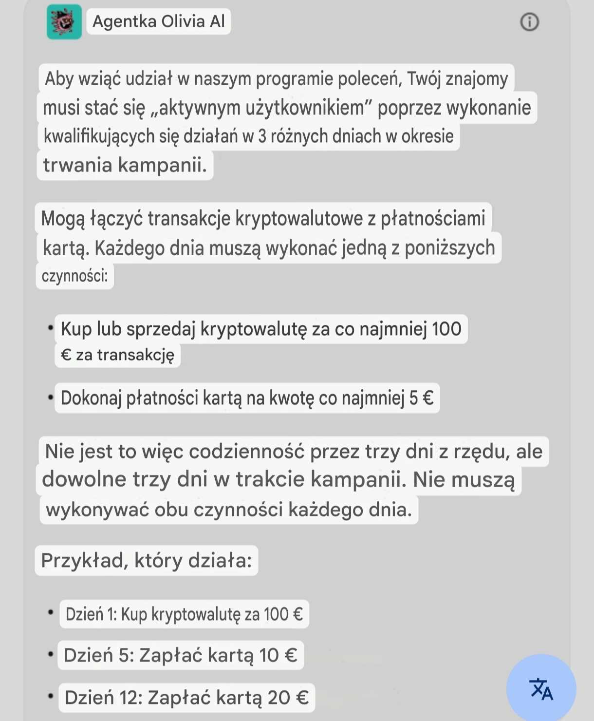 Po wykonaniu drugiej transakcji kartą trzeciego dnia bonus wpada i jest do podziału pół na pół.
