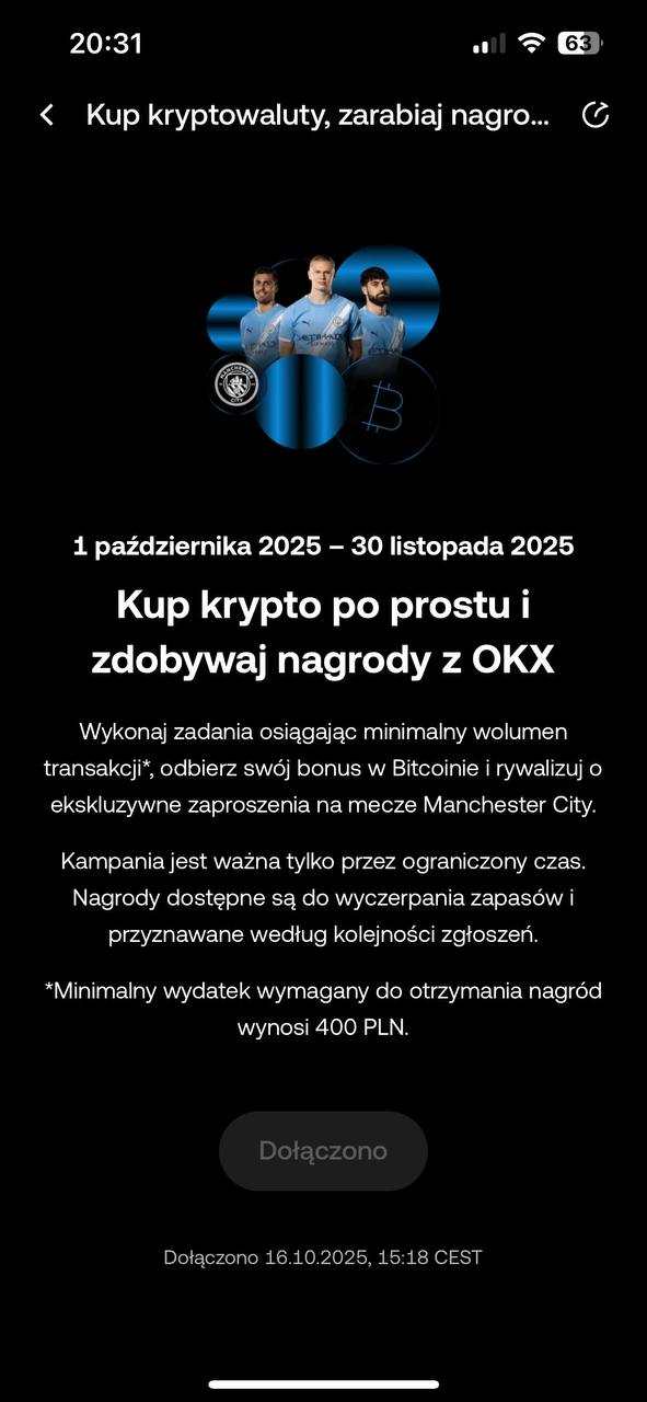[REFBACK] GIEŁDA OKX REFBACK 20€