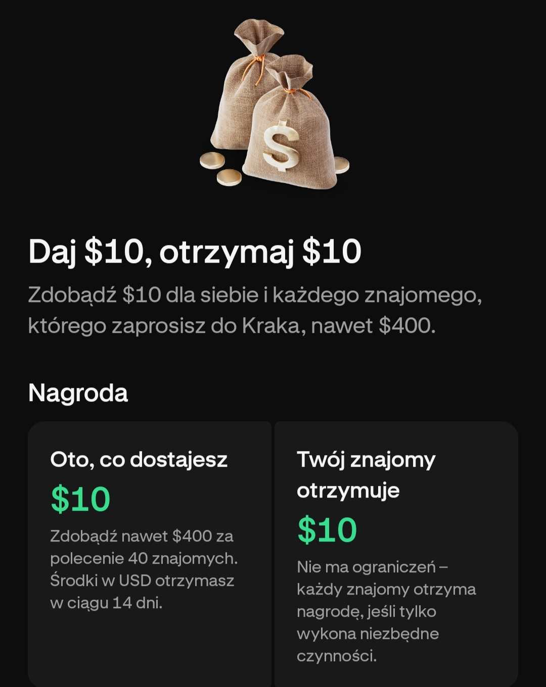 [REFBACK] KRAK refback ode mnie 5$ - za KYC, wpłatę 10$ i przelew na 1€