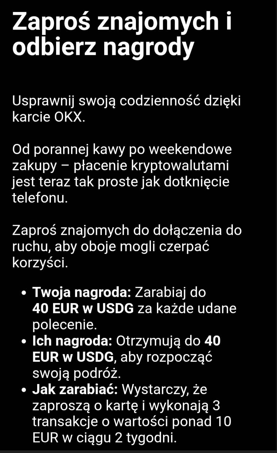 [REFBACK] OKX - oddam do 25 USDG za 3x płatności kartą po 10€