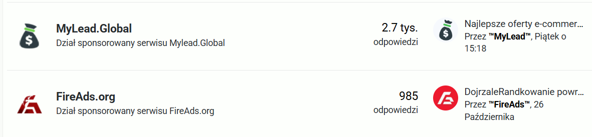 - własna treść reklamowa widoczna po wejściu do działu (widoczna nad tematami w dziale)
