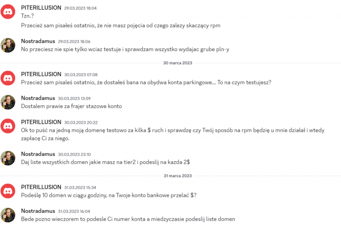 Archiwum Piterillusion scam 1800złSaulGoodman odpowiedział(a) na SaulGoodman temat w Archiwum - Kosz Przecież my obaj działamy w tej samej niszy BH tj bezczelnie fraudujemy reklamodawców więc o jakim nie łamaniu regulaminu mowa!? Typ wzioł coś w kredo,przeciągał dwa miesiące a na koniec znikł. Teraz tu na forum twierdzi ze nie zapłacił bo wszystko było BE i elo! Ponad rok kupował ode mnie wszystko (co potrzebne do działania w tej niszy) jak leci i był zawsze zadowolony,myślę ze z 20 k pln to na spokojnie dał mi zarobić wiec jak poprosił żebym na część poczekał to się zgodziłem i to był mój największy błąd bo i kasy całej nie dostałem jak i straciłem klienta. A tu dowód ze potrafiłem oddac mu kasę jak coś nie mogłem zrobić czy sie z czegś wywiązać wiec i tym razem byśmy się dogadali gdby coś nie grało!