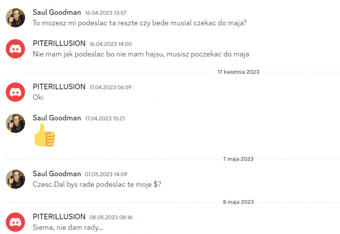 Piterillusion scam 1800zł SaulGoodman zareagował(a) na odpowiedź w temacie: