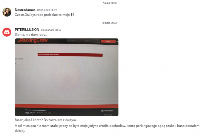 Archiwum Piterillusion scam 1800złSaulGoodman odpowiedział(a) na SaulGoodman temat w Archiwum - Kosz Tak mam czelność żadądać pieniędzy które jesteś mi po prostu winien! Skoro Ci coś nie pasowało to dlaczego przez tyle miesięcy ani słowem o tym mi nie wspomniałeś i np.nie żadałes zwrotu $ !?Odpowiedz jest prosta kłamiesz i zmyślasz bo bo szkoda Ci oddac dług! To że zbyt bystry nie jesteś to ja wiem ale nie wciśniesz mi kitu ze od dwóch lat fraudujesz parkingrew, kupiłeś dziesiatki kont z których zleciłeś minimum kilkadziesiat wypłat i nie zdajesz se sprawy ze faktury przy każdej wypłacie sa automatycznie wystawiane faktury na dane osoby która to konto założyła.... Przecież konto TF z dostępem do kampanii popunder tez kupiłeś ode mnie i każdy dolar tam wpłacony monetyzowałes na parkingu wiec czego nie rozumiem według Ciebie!?
