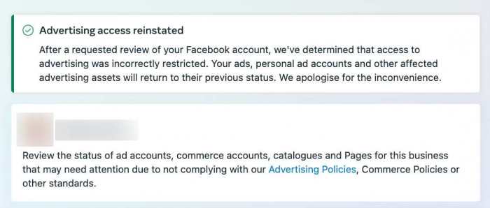 Mogę również pomóc jeśli masz problemy z banem/blokadą na facebook i nie wiesz, jak dalej wyświetlać swoje reklamy oraz w przypadku gdy potrzebujesz potwierdzić swoją tożsamość. Mam świetne konta przeznaczone specjalnie do reklam: ✅ Konta z potwierdzoną tożsamością ✅ Konta przywrócone po blokadzie ✅ Konta ze zweryfikowanym menadżerem reklam Dodatkowo mogę pomóc w formie mini-mentoringu w obsłudze takich kont, osobom, które nie mają lub mają małe pojęcie na ten temat, a chciałyby poznać więcej informacji. --------------- Tutaj przywrócone i wzmocnione kilka dni temu konto, znów nadające się do dalszego wyświetlania reklam 😀 Przed: I po, znów w pełni działające: --------------- A tutaj screen kolejnej z wielu opinii: Zapraszam do kontaktu przez telegram