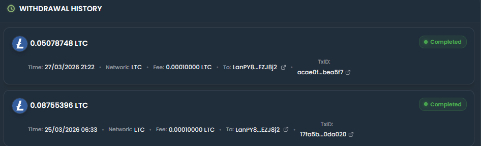 Dołącz do LtcKong i zacznij zarabiać LTC online! Szukasz miejsca, gdzie możesz zdobywać darmowe LTC w prosty sposób? Na LtcKong masz kilka możliwości zarabiania w jednym miejscu: Faucet (Claim LTC) - odbieraj darmowe LTC co określony czas Gry online - zwiększaj saldo, grając i podejmując wyzwania System poziomów i bonusów - im większa aktywność, tym większe nagrody Program poleceń (referral) - zarabiaj dodatkowo na aktywności zaproszonych osób Szybkie wypłaty (instant payouts) - po uzbieraniu minimalnej kwoty możesz wypłacić LTC bez długiego oczekiwania. Panel użytkownika pozwala śledzić zarobki, historię wypłat i bonusy. Jeśli jesteś aktywny codziennie, możesz systematycznie zwiększać swoje saldo i korzystać z dodatkowych promocji dla stałych użytkowników. Zarejestruj się tutaj i zacznij działać: https://ltckong.live/?ref=MarcinKuma Czysty link: https://ltckong.live Im więcej aktywności, tym większy potencjał zarobku Uwaga!!! Jestes moim poleconym i Masz wlaczony komputer i nie chcesz samemu klikac co godzinę a wolisz by robiło to automatycznie napisz do mnie podajac nick pod jakim sie zarejestrowales a udostepnue program który robi to za ciebie. Skrypt jest niewykrywalny i mojego autorstwa. -